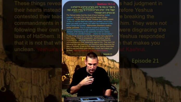 The Talmud states that the ritual of hand washing (netilat yedayim) is invalid if the mind and heart was not also “cleansed.” In the Talmud, Rabbi Yohanan ben Zakkai, stated: “In life it is not the dead who make you unclean; nor is it the water you wash your hands, but rather the ordinances of the king of kings that purifies.” Maimonides (Rambam) made a similar comment, “For to confine oneself to cleaning the outward appearance through washing and cleaning the garment, while having at the same time a lust for various pleasures and unbridled license … merits the utmost blame.” These things reveal to us how the Pharisees had judgment in their hearts instead of compassion, and therefore Yeshua contested their teachings because they were breaking commandments in their statements against them. They were not following their own teaching, and therefore were disgracing the laws of HaShem. It was by this reason that Yeshua responded that it is not that which goes into your mouth that makes you unclean. Yeshua’s statements were not about Kashrut.