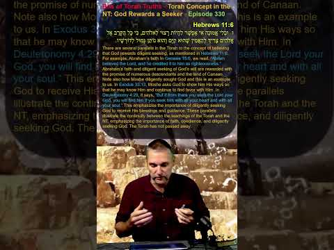 There are several parallels in the Torah to the concept of believing that God rewards diligent seeking, as mentioned in Hebrews 11:6. For example, Abraham’s faith In Genesis 15:6, we read, “Abram believed the Lord, and he credited it to him as righteousness.” Abraham’s faith and diligent seeking of God’s will are rewarded with the promise of numerous descendants and the land of Canaan. Note also how Moshe diligently sought God, and this is an example to us. In Exodus 33:13, Moshe asks God to show him His ways so that he may know Him and continue to find favor with Him. In Deuteronomy 4:29, it says, “But if from there you seek the Lord your God, you will find him if you seek him with all your heart and with all your soul.” This emphasizes the importance of diligently seeking God to receive His blessings and guidance. These parallels illustrate the continuity between the teachings of the Torah and the NT, emphasizing the importance of faith, obedience, and diligently seeking God. The Torah has not passed away.