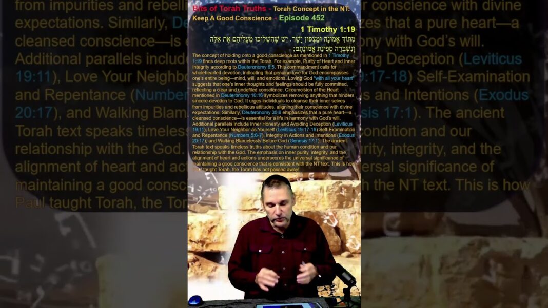 The concept of holding onto a good conscience as mentioned in 1 Timothy 1:19 finds deep roots within the Torah. For example, Purity of Heart and Inner Integrity according to Deuteronomy 6:5. This commandment calls for wholehearted devotion, indicating that genuine love for God encompasses one’s entire being—mind, will, and emotions. Loving God “with all your heart” suggests that one’s inner thoughts and feelings should be fully committed, reflecting a clear and undefiled conscience. Circumcision of the Heart mentioned in Deuteronomy 10:16 symbolizes removing anything that hinders sincere devotion to God. It urges individuals to cleanse their inner selves from impurities and rebellious attitudes, aligning their conscience with divine expectations. Similarly, Deuteronomy 30:6 emphasizes that a pure heart—a cleansed conscience—is essential for a life in harmony with God’s will. Additional parallels include Inner Honesty and Avoiding Deception (Leviticus 19:11), Love Your Neighbor as Yourself (Leviticus 19:17-18) Self-Examination and Repentance (Numbers 5:6-7), Integrity in Actions and Intentions (Exodus 20:17), and Walking Blamelessly Before God (Genesis 17:1). The ancient Torah text speaks timeless truths about the human condition and our relationship with the God. The emphasis on inner purity, integrity, and the alignment of heart and actions underscores the universal significance of maintaining a good conscience that is consistent with the NT text. This is how Paul taught Torah, the Torah has not passed away!