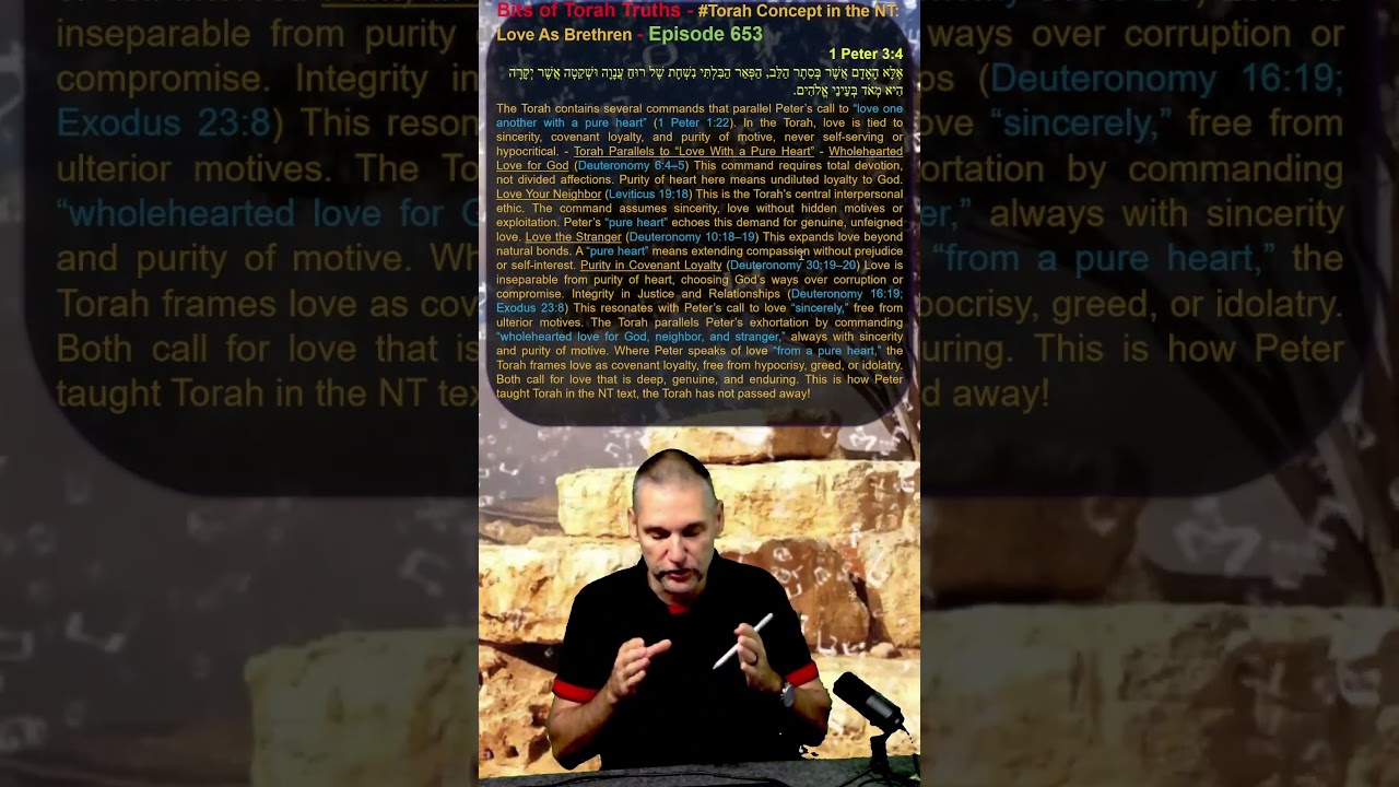 The Torah contains several commands that parallel Peter’s call to “love one another with a pure heart” (1 Peter 1:22). In the Torah, love is tied to sincerity, covenant loyalty, and purity of motive, never self-serving or hypocritical. – Torah Parallels to “Love With a Pure Heart” – Wholehearted Love for God (Deuteronomy 6:4–5) This command requires total devotion, not divided affections. Purity of heart here means undiluted loyalty to God. Love Your Neighbor (Leviticus 19:18) This is the Torah’s central interpersonal ethic. The command assumes sincerity, love without hidden motives or exploitation. Peter’s “pure heart” echoes this demand for genuine, unfeigned love. Love the Stranger (Deuteronomy 10:18–19) This expands love beyond natural bonds. A “pure heart” means extending compassion without prejudice or self-interest. Purity in Covenant Loyalty (Deuteronomy 30:19–20) Love is inseparable from purity of heart, choosing God’s ways over corruption or compromise. Integrity in Justice and Relationships (Deuteronomy 16:19; Exodus 23:8) This resonates with Peter’s call to love “sincerely,” free from ulterior motives. The Torah parallels Peter’s exhortation by commanding “wholehearted love for God, neighbor, and stranger,” always with sincerity and purity of motive. Where Peter speaks of love “from a pure heart,” the Torah frames love as covenant loyalty, free from hypocrisy, greed, or idolatry. Both call for love that is deep, genuine, and enduring. This is how Peter taught Torah in the NT text, the Torah has not passed away!