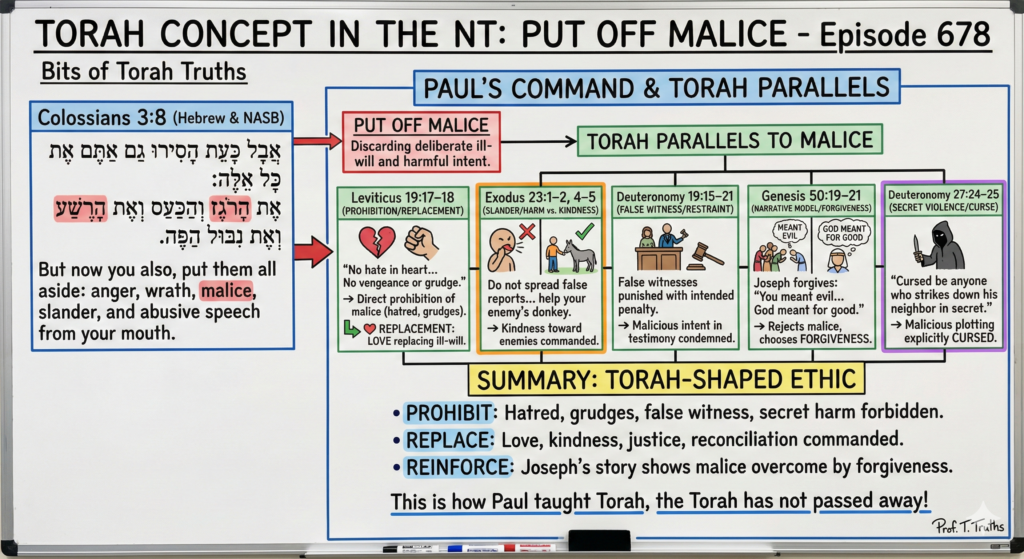 - Ethical Antidote: Torah consistently replaces malice with love, justice, and kindness, the same ethic Paul reaffirms.
