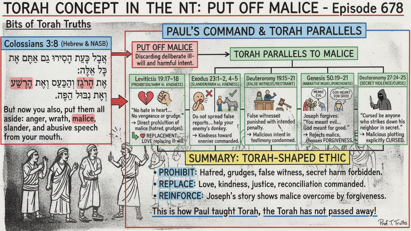 - Ethical Antidote: Torah consistently replaces malice with love, justice, and kindness, the same ethic Paul reaffirms.