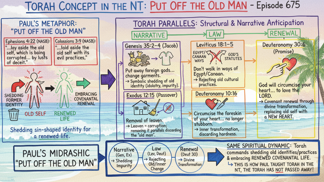 Paul’s phrase “put off the old man” (Eph. 4:22; Col. 3:9) is about shedding a former identity shaped by sin and embracing a renewed life. While the Torah doesn’t use that exact metaphor, it does contain structural and narrative parallels that anticipate the idea of leaving behind an old self and embracing covenantal renewal.