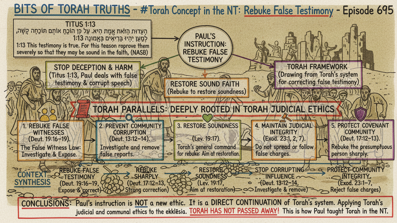 Paul is dealing with false testimony, deception, and corrupt speech that harms the community when he said to Rebuke False Testimony (Titus 1:13). The Torah has a very strong and well‑developed framework for confronting and correcting false testimony, and Paul is clearly drawing from it.