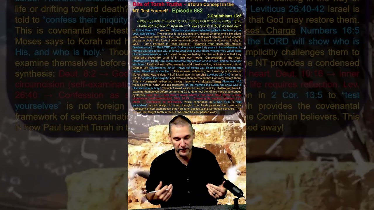 Paul’s exhortation in 2 Cor. 13:5 to “test yourselves” is not foreign to Torah thought. The Torah provides the covenantal framework of self-examination that Paul later applies to the Corinthian believers. This is how Paul taught Torah in the NT, the Torah has not passed away!