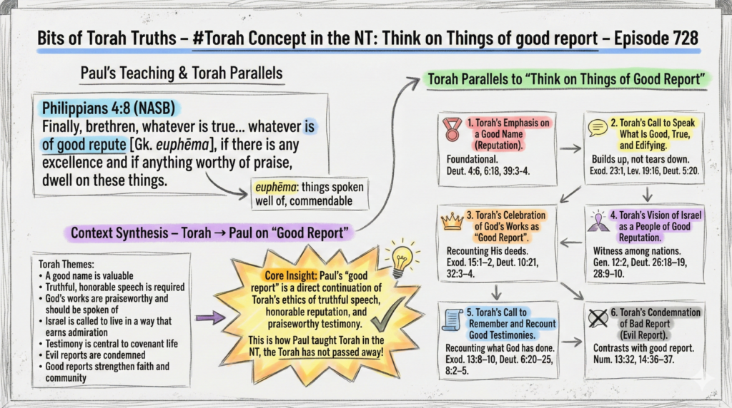 Paul’s “good report” is a direct continuation of Torah’s ethics of truthful speech, honorable reputation, and praiseworthy testimony. This is how Paul taught Torah in the NT, the Torah has not passed away!