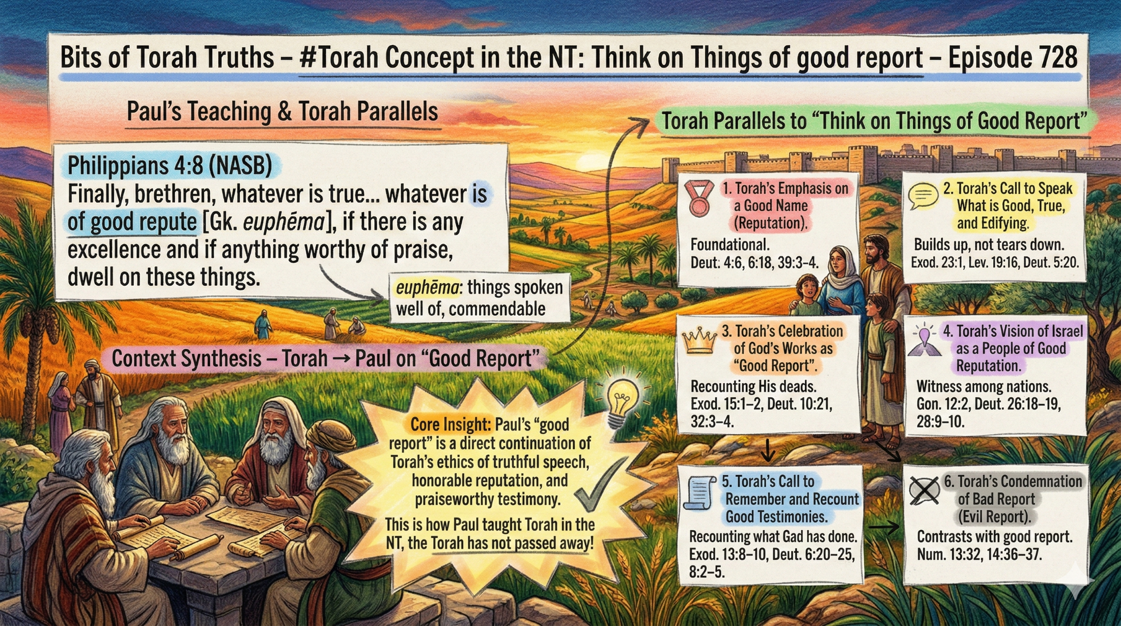 Paul’s “good report” is a direct continuation of Torah’s ethics of truthful speech, honorable reputation, and praiseworthy testimony. This is how Paul taught Torah in the NT, the Torah has not passed away!