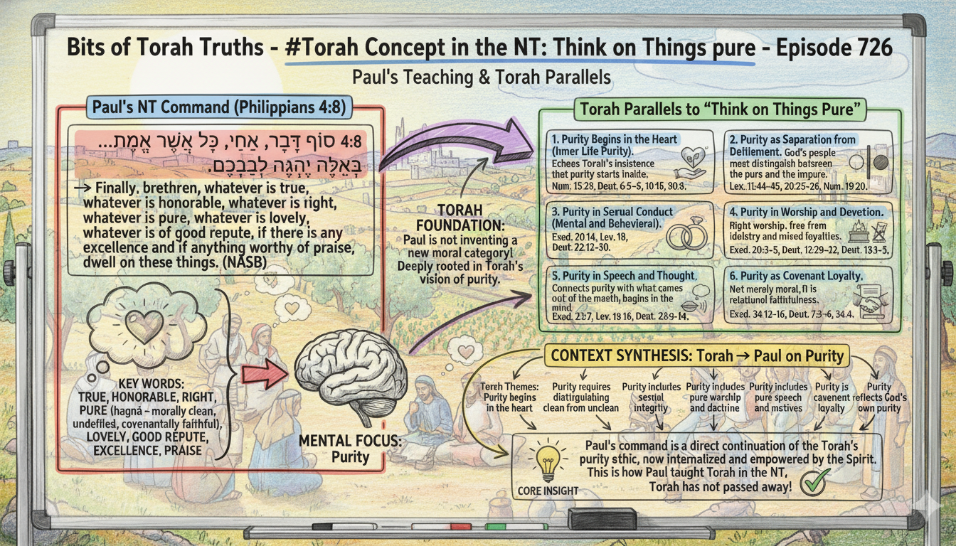 - Purity Begins in the Heart (Inner Life Purity). Paul’s emphasis on mental purity echoes the Torah’s insistence that purity starts inside, not merely in ritual actions. Num. 15:39, Deut. 6:5–6, 10:16, 30:6.