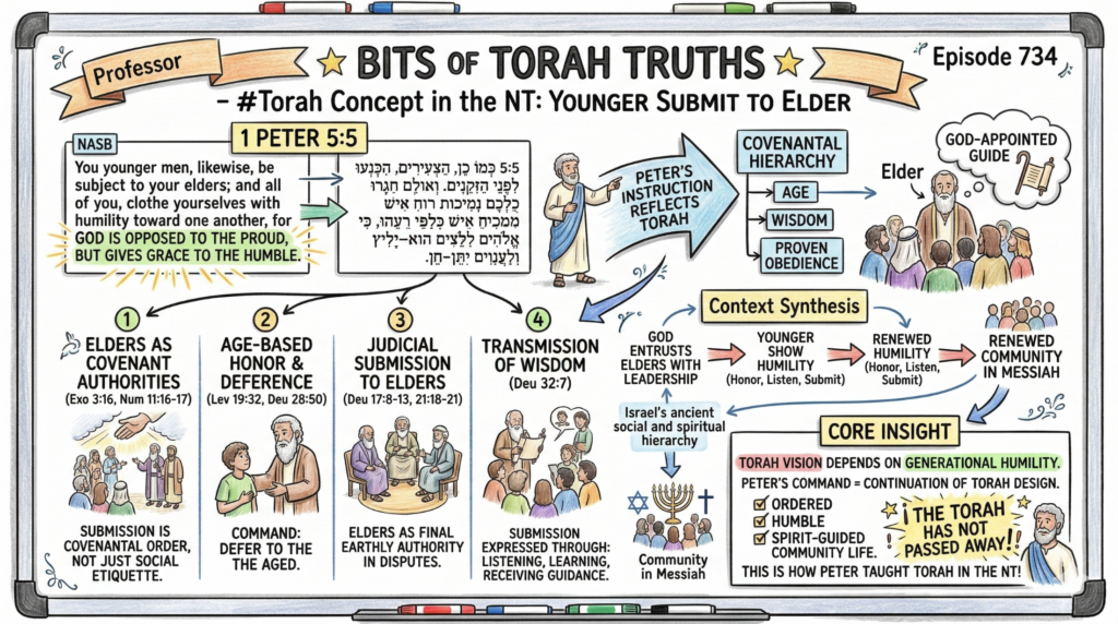 The Torah’s vision of community depends on generational humility, where the younger willingly receive guidance from those seasoned in covenant faithfulness. Peter’s command is not a new Christian ethic but a continuation of the Torah’s design for ordered, humble, Spirit‑guided community life. This is how Peter taught Torah in the NT, the Torah has not passed away!