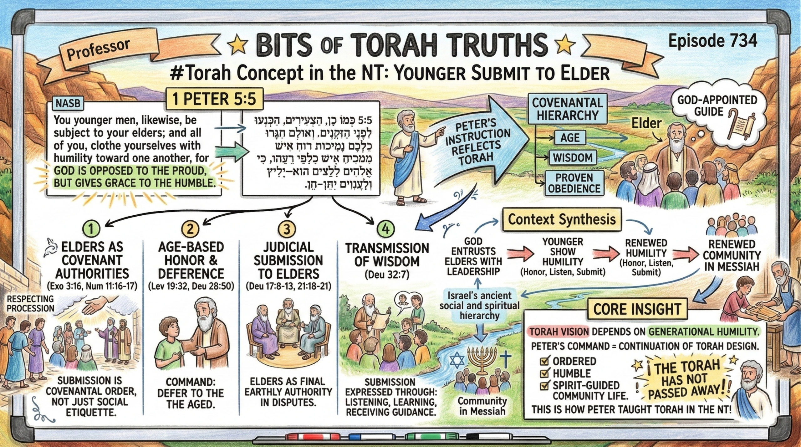 The Torah’s vision of community depends on generational humility, where the younger willingly receive guidance from those seasoned in covenant faithfulness. Peter’s command is not a new Christian ethic but a continuation of the Torah’s design for ordered, humble, Spirit‑guided community life. This is how Peter taught Torah in the NT, the Torah has not passed away!