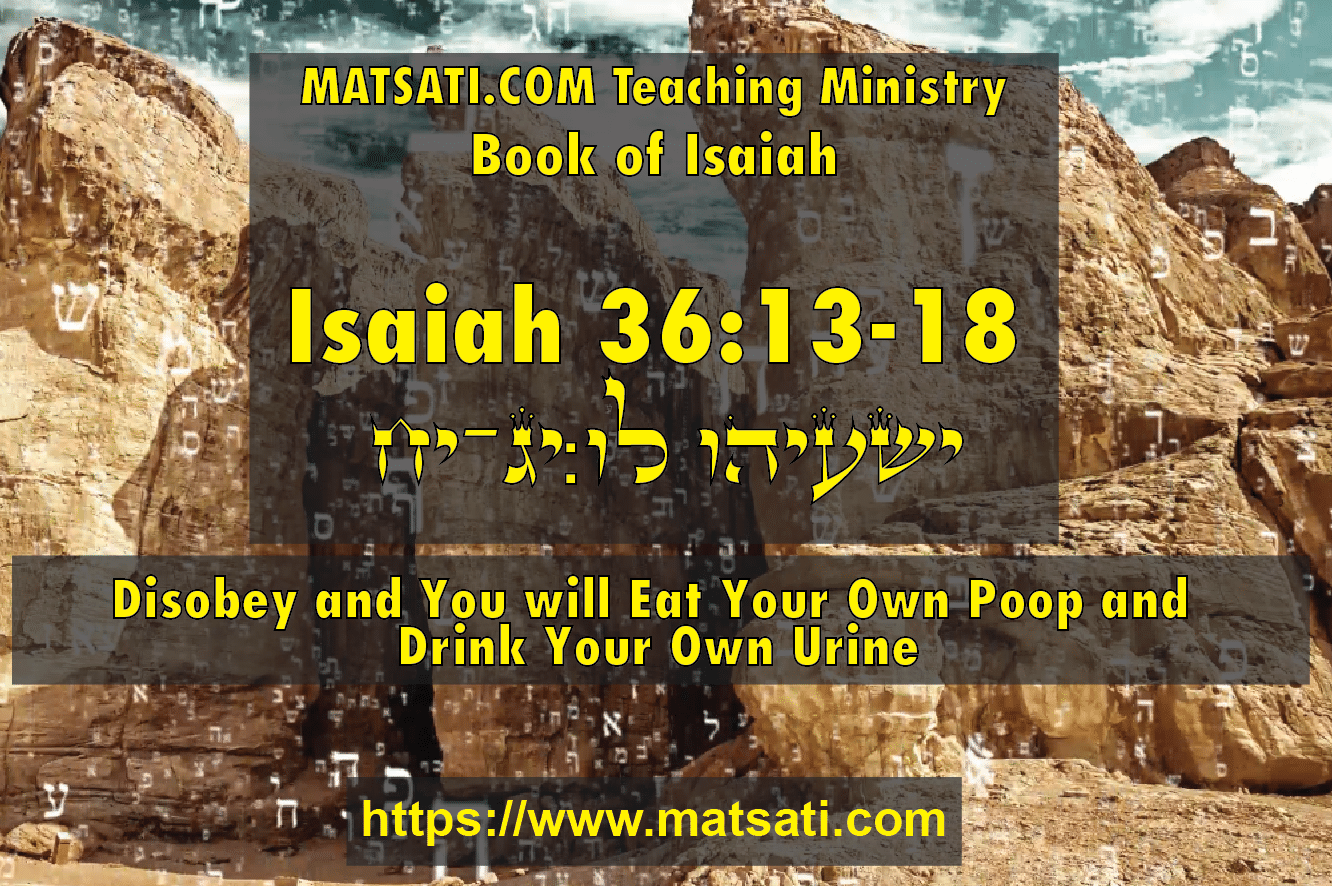 The Targum translates Isaiah saying the following, יג וְקָם רַב שָקֵי וְאַכלִי בְקָל רַב יְהוּדַת וַאְמַר שְמַעוּ יָת פִתגָמֵי מַלכָא רְרַבתָנָא מַלכָא דְאַתוּר׃ 36:13 Then Rabshakeh stood forth, and cried with a loud voice in the Jews’ language, and said, Hear ye the words of our great king, the king of Assyria. יד כִדנָן אְמַר מַלכָא לָא יַטעֵי לְכֹון חִזקִיָה אְרֵי לָא יִכֹול לְשֵיזָבָא יָתְכֹון׃ 36:14 Thus saith the king, Let not Hezekiah cause you to err: for he shall not be able to deliver you. טו וְלָא יַרחֵיץ יָתְכֹון חִזקִיָה עַל מֵימְרָא דַיוי לְמֵימַר שֵיזָבָא יְשֵיזְבִנַנָא יוי וְלָא תִתמְסַר קַרתָא הָדָא בְיַד מַלכָא דְאַתוּר׃36:15 Neither let Hezekiah make you trust in the WORD of the Lord, saying, The Lord will surely deliver us: this city shall not be delivered into the hand of the king of Assyria. טז לָא תְקַבְלוּן מִן חִזקִיָה אְרֵי כִדנָן אְמַר מַלכָא דְאַתוּר עְבִידוּ עִמִי שְלָמָא וּפוּקוּ לְוָתִי וַאְכוּלוּ גְבַר פֵירֵי גֻפנֹוהִי וּגבַר פֵירֵי תֵינֹוהִי וּשתֹו גְבַר מֵי גוּבֵיה׃ 36:16 Hearken not to Hezekiah: for thus saith the king of Assyria, Make peace with me, and come out to me: and eat ye every one of the fruit of his vine, and every one of the fruit of his fig tree, and drink ye every one of the waters of his cistern: (TgJ) Here Rabshakeh makes the claim that he has something of value to the people, if they surrender the Assyrians will leave, and then they will come back to deport them to a land that has vineyards, fig trees, water, etc. What is coupled to this promise is the call for the people to forsake their faith in God. Isn’t it interesting that this is how it always works, the evil one comes and wants us to depart from our faith in the Lord God Almighty. The Lord God seeks for us to make a commitment to Him and to forsake the world. Note how the world calls to forsake the Lord and commit oneself to the world. The Scriptures describe what is acceptable and what is forbidden in respect to the world, in relation to who we are as the children of God. God wants us to commit our lives to Him and to live by His Words. When Assyria calls the people to forsake their God, they are telling them to seek after sin, since the way of the world is sin. Notice how the Scriptures described these things according to 2 Chronicles 28:16, 28:22-23.