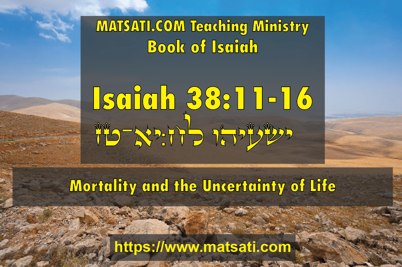 In Isaiah 38:1-22 we read how life is fleeting, there is a certain amount of uncertainty in regard to life and death. At any moment there is the possibility of death, whether one is traveling down the highway or locally, an accident may lead to death, or as one gets older there is the chance of having health related illnesses which lead to death. The point is in relation to what Hezekiah is saying here in Isaiah 38:10 פֻּקַּ֖דְתִּי יֶ֥תֶר שְׁנוֹתָֽי׃ “I inspect/look at/see the remainder of my years” this provides us with the context of how Isaiah saw the end of life scenario, where suddenly he is faced with his life, how he lived, and all of his achievements are for nothing when it comes to his finding himself at the end of his life without any kind of control to stop what is coming, death. We note how death draws perspective on our lives, what we have done, what we are presently doing, and then our eternal destiny. This is why the biblical imperative is so important to live repentant lives, to turn from sin and seek the God of Israel and His Messiah Yeshua! Life is fleeting and the Scriptures describe these aspects of life quite often, as shown in the following list of verses.
