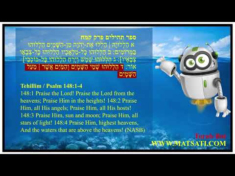 An interesting passage we read in the Bible is from Tehillim / Psalms 148:4 which mentions the waters that are above the heavens. This appears to be a reference to what we read in Bereshit / Genesis 1:6-8 (ו וַיֹּאמֶר אֱלֹהִים יְהִי רָקִיעַ בְּתוֹךְ הַמָּיִם וִיהִי מַבְדִּיל בֵּין מַיִם לָמָיִם: ז וַיַּעַשֹ אֱלֹהִים אֶת-הָרָקִיעַ וַיַּבְדֵּל בֵּין הַמַּיִם אֲשֶׁר מִתַּחַת לָרָקִיעַ וּבֵין הַמַּיִם אֲשֶׁר מֵעַל לָרָקִיעַ וַיְהִי-כֵן: ח וַיִּקְרָא אֱלֹהִים לָרָקִיעַ שָׁמָיִם וַיְהִי-עֶרֶב וַיְהִי-בֹקֶר יוֹם שֵׁנִי:) Here the text states that “and God said there was a firmament in the midst of the waters, separating waters from waters” (וַיֹּאמֶר אֱלֹהִים יְהִי רָקִיעַ בְּתוֹךְ הַמָּיִם) and there was the firmament between the waters. (וִיהִי מַבְדִּיל בֵּין מַיִם לָמָיִם) the scriptures goes on saying, “and God made the firmament and caused a division between the waters below from the firmament (וַיַּעַשֹ אֱלֹהִים אֶת-הָרָקִיעַ וַיַּבְדֵּל בֵּין הַמַּיִם אֲשֶׁר מִתַּחַת לָרָקִיעַ) and between the waters above the firmament” (וּבֵין הַמַּיִם אֲשֶׁר מֵעַל לָרָקִיעַ) “and it was so” (וַיְהִי-כֵן). The text is pretty clear in 1:8 saying, “and God called the firmament the sky/heaven and there was morning and there was evening the second day (וַיִּקְרָא אֱלֹהִים לָרָקִיעַ שָׁמָיִם וַיְהִי-עֶרֶב וַיְהִי-בֹקֶר יוֹם שֵׁנִי). In Bereshit / Genesis 1:8 it makes very clear, the firmament is called the sky. The controversial passage from Tehillim / Psalms 148:4 and Bereshit / Genesis 1:7 is concerning the phrase “waters above the expanse/firmament/sky/heaven.” According to the Torah, this text is meant to be taken (interpreted) literally. The English translation presents a problem in our understanding of the waters above the firmament, atheists have used this as a proof text of a sort to argue the creation account is only metaphorical and not to be taken as literal. Let’s look at these verses a little closer beginning with Tehillim / Psalms 148:4.